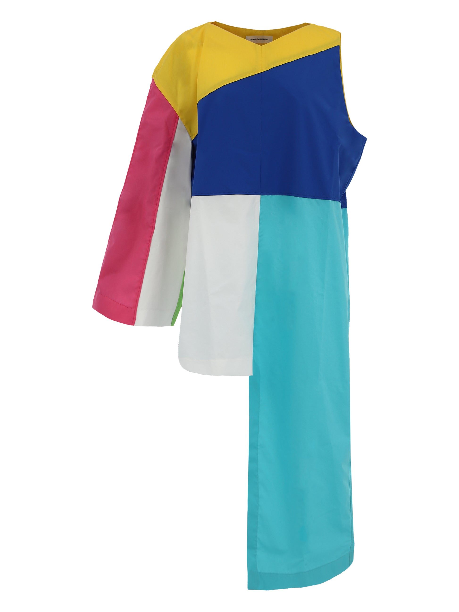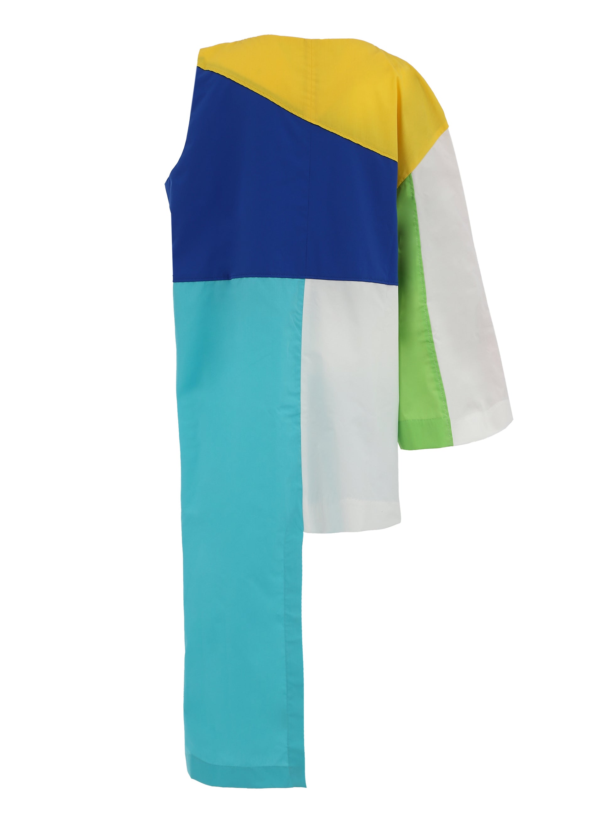 非対称であることを恐れず、むしろ不均衡の中に潜む美を際立たせた一着。直線と曲線、右と左の境界を壊し、新たな均衡を生み出している。造形的なアンバランスは、従来の調和を揺さぶり、革新の象徴となる。